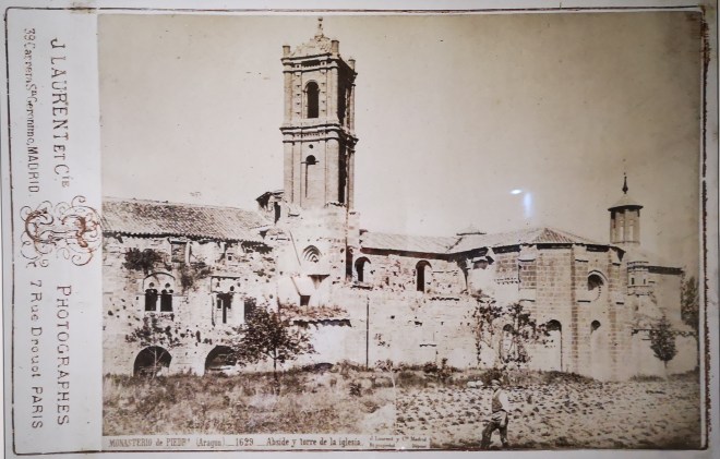 Volviendo a la exposición, veremos la imagen prefotográfica, litografías que se encuentran en la serie Recuerdos y bellezas de España, en concreto en el volumen dedicado al antiguo reino de Aragón, escrito por José María Quadrado y cuyas ilustraciones corresponden a Francisco Javier Parcerisa, quien refleja la naturaleza pintoresca del entorno del monasterio.