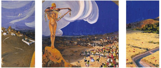 Ficha: Ramón Acín. Alegoría del baile. (Tríptico). 1915-16. Óleo/cartón. 460×515 cm. Museo de Huesca.