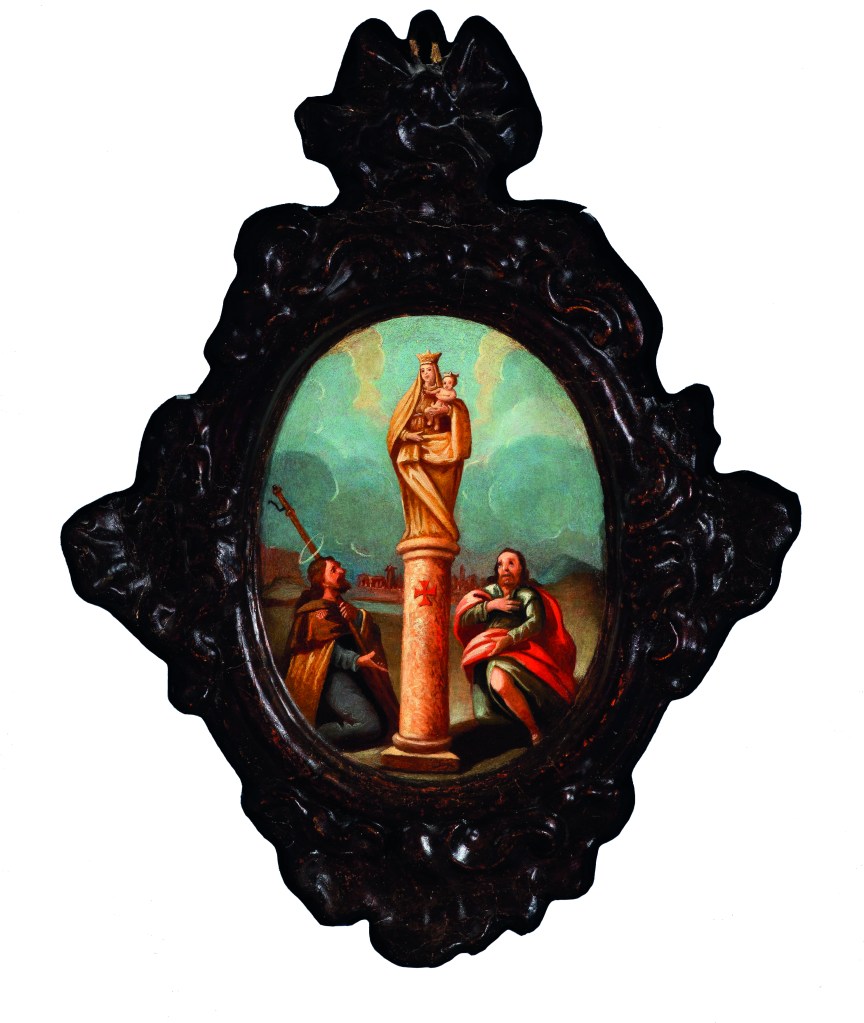 El resto de la sala se dedica a las pinturas de la cúpula sobre la Santa Capilla el Pilar, se exhiben dos de los primeros bocetos de presentación que fueron desechados y los nuevos que se encargaron a González Velázquez bajo la supervisión de su maestro, que por primera vez se exponen juntos. Se trata de los bocetos en forma de lunetas Aparición de la Virgen del Pilar al apóstol Santiago y los primeros discípulos a orillas del Ebro (1752) y Construcción de la Santa Capilla el Pilar con ayuda de los ángeles (1752) y el boceto del cupulín El espíritu Santo en la Gloria (1752), que fueron retocados por Giaquinto. Cierra este capítulo las obras realizadas por Francisco Bayeu: Construcción de la Santa Capilla con ayuda de los ángeles, adquirido recientemente por la Fundación Ibercaja para el Museo Goya, Colección Ibercaja-Museo Camón Aznar de Zaragoza, que tras el estudio pormenorizado llevado a cabo por el profesor Arturo Ansón, comisario así mismo de esta muestra, se ha atribuido a Francisco Bayeu. Esta obra es pareja de la copia de la Venida de la Virgen del Pilar a Zaragoza y aparición al apóstol Santiago y a los primeros discípulos a orillas del Ebro también adquirida recientemente por el Grupo Jorge de Zaragoza. Ambas fueron realizadas por Francisco Bayeu en la segunda mitad del año 1753, cuando era ayudante de Antonio González Velázquez en la pintura al fresco de la cúpula oval sobre la Santa Capilla del templo del Pilar de Zaragoza.
