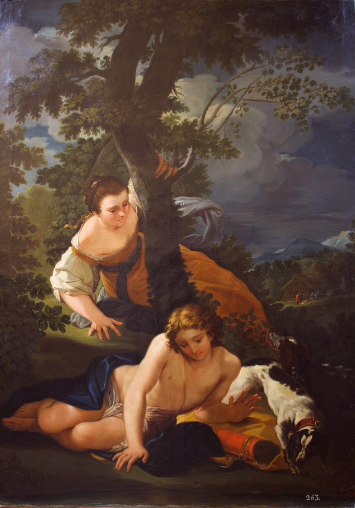 El impacto de los dos años que Goya pasó en tierras italianas se siente vigorosamente en muchas de sus obras: como en el coreto de la Basílica del Pilar de Zaragoza titulado La Gloria o La Adoración del nombre de Dios. Esta obra ha de interpretarse como el despegue de su carrera; otras obras que también se encuentran en este ámbito expositivo son: el dibujo Cabeza de ángel (1771-1772, Museo de Zaragoza) o El bautismo de Cristo (1770-1774, colección Conde de Orgaz, Madrid). Paralelamente, Goya reflexionó en sus obras sobre cuestiones que quedan englobados dentro de lo sublimen como lo sobrenatural, lo grotesco, el sueño, la violencia o el miedo, que, en el último área expositiva, quedan reflejadas en obras como: Cómicos ambulantes (1793, Museo Nacional del Prado); Visión fantasmal o fantasmagoría (1790-1798, Museo de Zaragoza) o, El prendimiento de Cristo (1798, Cabildo Catedral Primada de Toledo), obra de fuerte impacto de caravaggismo.