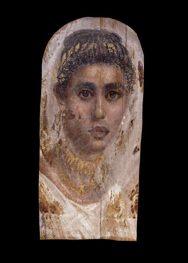 Retrato de mujer. Ca. 100-120 a.C. Pintura al temple y encáustica sobre madera de tilo. Britis Museum, Londres.