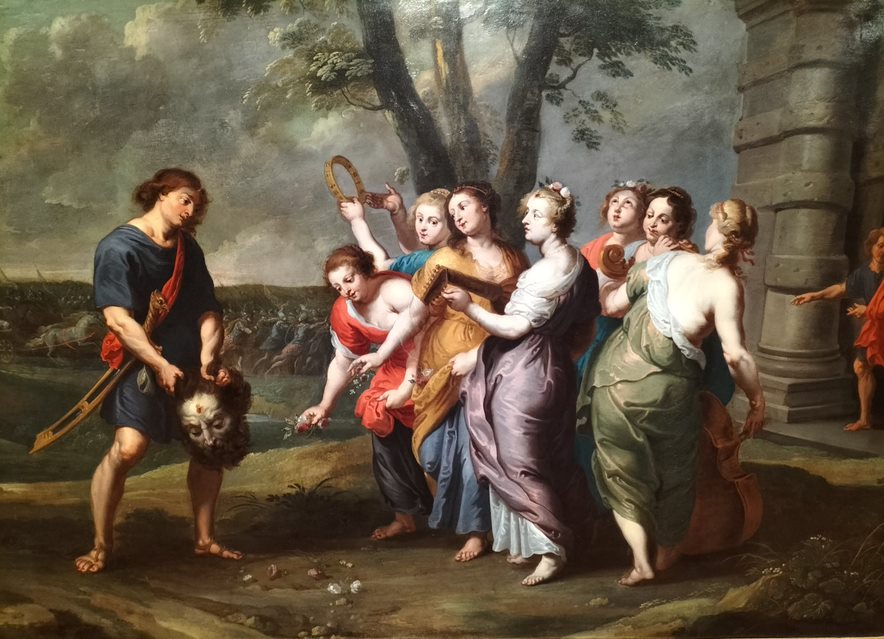 David llevando la cabeza de Goliat a Jerusalén. Óleo sobre cobre. Primera mitad del siglo XVII. Fundación Ibercaja. Foto. José Antonio Val