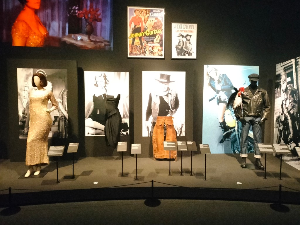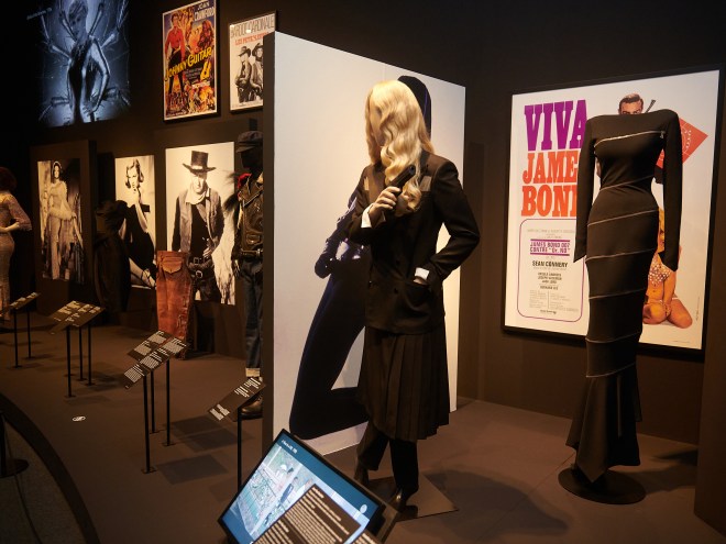 Para el espectador interesado en la moda, podrá apreciar vestuario, conjuntos y piezas de alta costura que llevaron Catherine Deneuve en 8 mujeres (2002); Sharon Stone en Instinto básico (1992) o Marilyn Monroe en Eva al desnudo (1950). Como novedad, la exposición incorpora un vestido de Azedine Alaïa que se verá solo en CaixaForum Zaragoza y que se inspira en el que llevó Arletty en la película Hotel du Nord, de Marcel Carné (1938). En ella, la actriz y exmodelo lucía un vestido con cremalleras que inspiraría a Gaultier en sus creaciones. También se pueden apreciar los trajes de Superman (1978) que vistió Christopher Reeve; He-Man y los Masters del Universo (1987), con Dolph Lundgren; La máscara del zorro (1998), con Antonio Banderas, o el short que llevó Sylvester Stallone en Rocky (1976). La exposición incluye también otras piezas de indumentaria únicas como la cota de malla que llevó Ingrid Bergman en Juana de Arco (1948) o el vestuario de Victoria Abril en Kika (1993) que, junto con el de otras películas como La mala educación (2004) o El quinto elemento (1997), fue diseñado por Gaultier. En esta línea, también se dedica una atención especial a las figuras heterodoxas de guerreros y guerreras, andróginos y travestis, así como a la influencia de las culturas del rock, el punk y lo queer, que en los últimos años han cambiado la moda.
