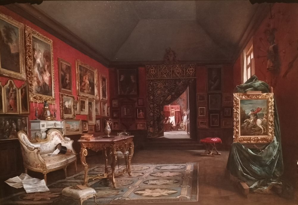 El último ámbito de la exposición, «El artista en el estudio», aporta una serie de representaciones de pintores en el interior de sus espacios de trabajo. En el siglo XIX, la atención objetiva a todos los elementos de la vida cotidiana, junto con la particular reflexión del artista sobre su entono inmediato y las circunstancias de su propia práctica, propiciaron el gusto por la representación de los ambientes de trabajo, es decir, de los estudios. En estas obras era frecuente la inclusión, junto a las propias obras del pintor, de las de otros artistas apreciados por él, del pasado o del presente, de copias realizadas por el propio autor o de imágenes grabadas o fotografiadas. Destacamos: Interior del estudio de Muñoz Degrain en Valencia, de Francisco Domingo Marqués (1867, óleo/tabla), y el Estudio del pintor, de Ignacio León y Escosura (1888, óleo/lienzo).