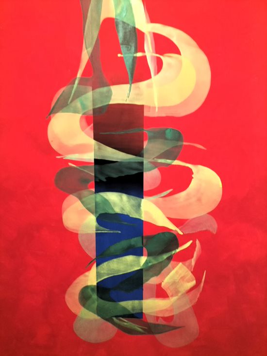 Los fondos de sus cuadros suelen ser más bien monocromáticos, y siempre hay una manifestación de una figura más bien uniforme, tal vez sea una sugerencia plástica, o un capricho; en cualquier caso, es el color el que otorga las formas y no al revés, es el protagonista de toda la creación artística, no es ni un adorno ni un complemento. José Manuel Broto compone sinfonías cromáticas usando colores muy vivos: rojo, amarillo, azul, verde…etc…Siendo predominante el color rojo- en la exposición, destacamos algunas obras como: Sin título (2007, acrílico sobre tela), Sin título (2008, acrílico sobre tela), Sin título (2003, tintas pigmentadas sobre papel), Sin título (2009, tintas pigmentadas sobre papel) o Sin título (2020, acrílico sobre papel).- Son los colores de la vida y del ímpetu por seguir viviendo y creando, los que sujetan y organizan las formas geométricas que el artista añade a la obra final, en definitiva, los colores de Broto son el hilo narrativo y el elemento estructural de toda su obra.
