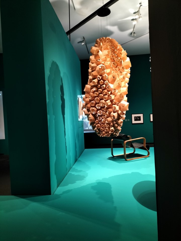 No es hasta bien entrada la década de 1960, cuando la naturaleza deja de ser, para muchos artistas, un simple depósito pictórico para convertirse en una fuente de creación. En la obra Las plumas de Esopo, una obra de 1968, él artista Pino Pascali introduce la dimensión táctil con una obra que plantea la relación de la escritura- la cultura—con él mundo animal- la materialidad de la pluma-. Una obra del artista italiano Giuseppe Penone, de 1973, incorpora elementos de la naturaleza con un enfoque conceptual. Es el caso de Albero (Árbol), que revela el árbol oculto en las vigas industriales de madera. La historia del diseño mantiene un vínculo muy estrecho con la historia de la industrialización en lo que a la noción de naturaleza se refiere. En las vanguardias artísticas de principios de siglo destaca la observación de la naturaleza y el estudio de las ciencias naturales, que conducen a un vocabulario de nuevas formas, u objetos de líneas curvas, a imagen y semejanza de los seres vivos. En los últimos años, las nuevas tecnologías científicas y la biotecnología han irrumpido en la creación artística para hacer que emerjan nuevas formas de ecología política y social. Los artistas actuales crean obras con biomateriales o materia orgánica y trabajan con procesos naturales para crear obras de arte conceptuales que evolucionan como organismos vivos. Buenos ejemplos en esta exposición podrían ser la estructura diseñada en el año 2012 por Andrew Kudless Crisálida III, realizada a partir de la forma de una colonia de bálanos. La obra realizada a partir de redes orgánicas y estructuras celulares, titulada Medusa 1 (2012), realizado por la artista israelí Neri Oxman, creando una forma que puede ser la medusa animal o la figura mitológica: monstruo y amuleto. En sus maquetas, la artista Alisa Andrasek, trabaja a partir de materiales biónicos que se producen a partir de materiales biológicas tratadas con herramientas digitales para crear formas arquitectónicas inspiradas en el mundo orgánico.