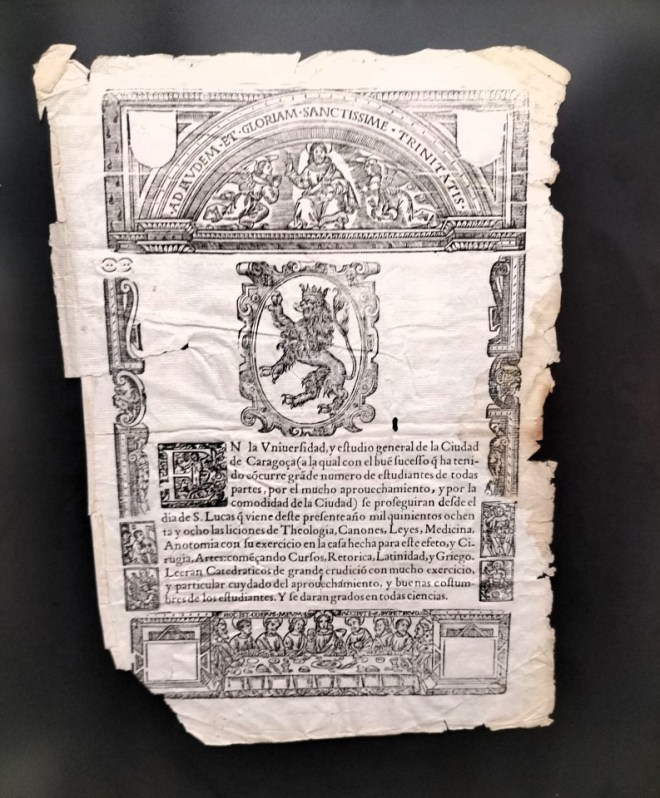 Pasquín anunciador de la Universidad de Zaragoza. 1588. Colección Universidad de Zaragoza. Foto. José Antonio Val